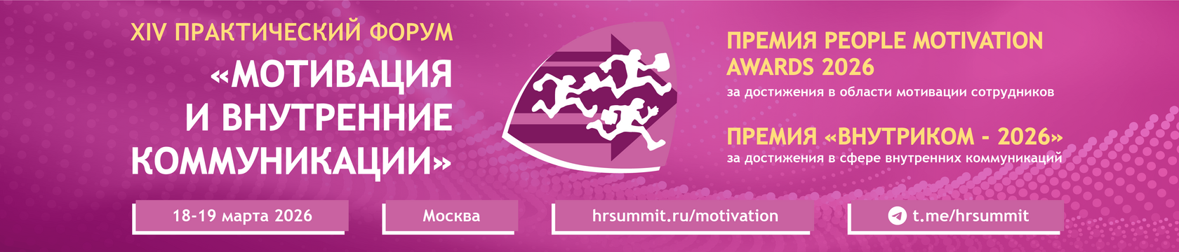 До 2 марта открыт прием документов на соискание Премий: People Motivation Awards 2026, которая вручается за достижения в области мотивации сотрудников, и «Внутриком - 2026», которая поощряет успехи в области внутренних коммуникаций. Церемонии награждения лауреатов состоятся на Весенней сессии Саммита HR-Директоров 18 и 19 марта на XIV Практическом Форуме «Мотивация и внутренние коммуникации».